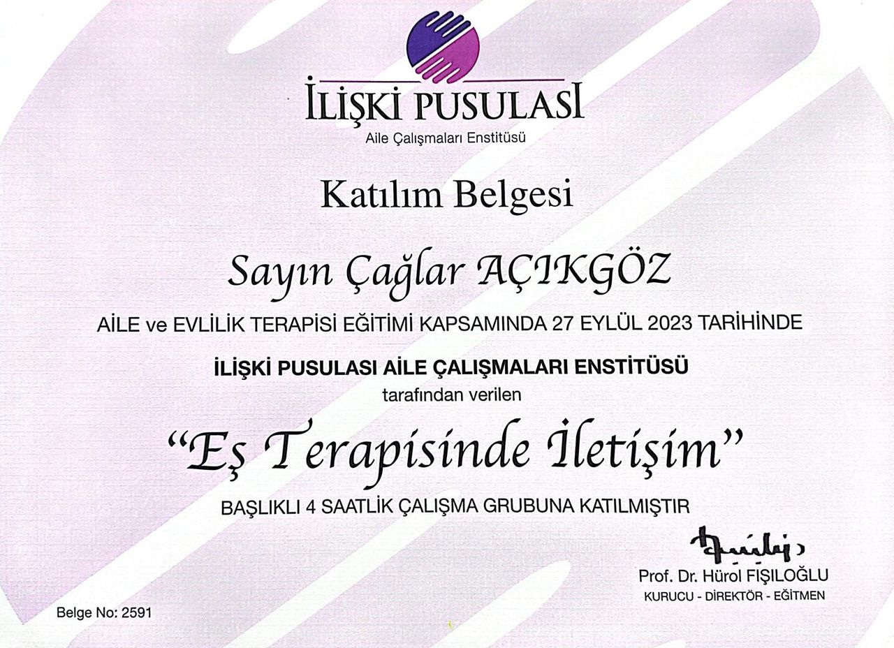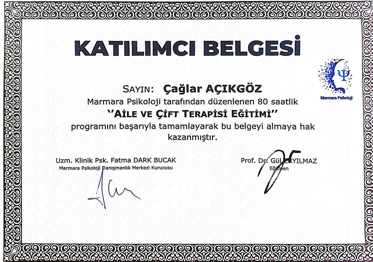 Evlilik terapisi için gittim. Çağlar Hanım tanıdığım en mükemmel insanlardan birisi. Bunca yıllık mücadelemin en büyük destekçisi iyi ki Rabbim karşıma çıkartmış. Hastası için bütün fedakarlıkları yapıyor. Hastasına karşı desteğini esirgemiyor. Çok memnunum kendisinden. İyi ki kendisini tanımışım herkese tavsiye ederim. Tüm hastalar tereddüt etmeden gidebilir. Hastasını dinliyor, elinde geleni yapıyor. Alanı değilse yönlendirme yapıyor, dört dörtlük bir doktor. Çok tecrübeli birisi, yargılamıyor, yol gösterip kararı hastasına bırakıyor.