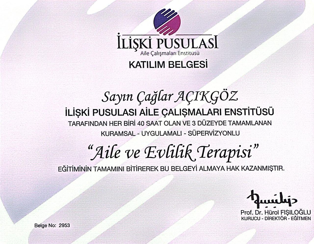 Doktor Çağlar Hanım, eşimin kanser hastalığı tedavisi sürecinde benim ümitsizliğimin, depresyonumun, çaresizliğimin ve korkularımın hepsiyle yüzleşebilmem için en iyi ilacı verdi ve beni dinledi. Kendimin de ne kadar değerli olduğumu, hayatımda yaşanmaya değer bir geleceğimin olduğunu görebilmemi sağladı. Yaşama ve insanlara ümit ve neşeyle bağlanmamın tekrar mümkün olduğunu sayesinde gördüm. Hocama bütün içtenliğimle teşekkür ediyorum, o olmasaydı bu süreci atlatamazdım.